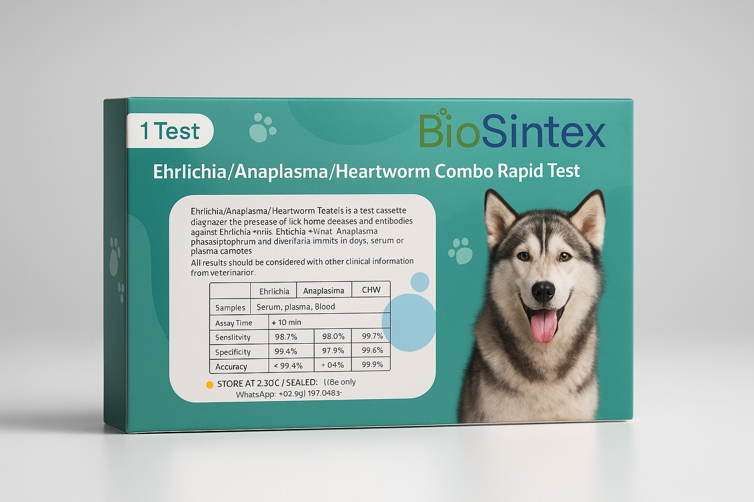 Está diseñado para la detección rápida cualitativa de anticuerpos específicos frente a EERLIQUIA-ANAPLASMA-GUSANO DEL CORAZON
