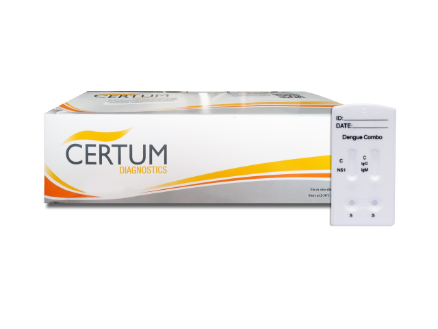 Prueba rápida para la detección cualitativa de antígeno NS1, los anticuerpos IgG e IgM del virus del dengue en sangre entera, suero o plasma humano. Para uso profesional de diagnóstico in vitro.