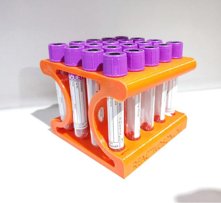 Gradilla impresa en PLA para 20 Tubos de 13 mm de Diametro.