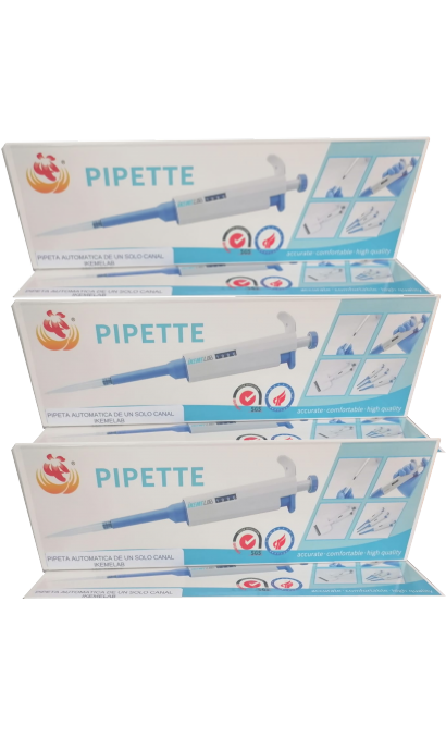 Kit de Pipetas Automáticas de un solo canal con volumen variable de 100 a 1000 uL, + pipeta automatica de 2-20 uL + pipeta automática de 10-100uL, marca IKEMELAB