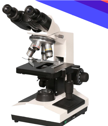 Microscopio compuesto de cabeza binocular inclinada 30º, distancia interpupilar 50-75mm con ajuste de Dioptría, Oculares de campo amplio WF 10X, campo visual 18mm, objetivos de 4x, 10x, 40x, 100x, condensador Tip Abbe N.A. 1.25 con diafragma, platina mecánica de doble capa 140x132mm / 75x45mm. Con iluminación led de 3W con control de intensidad, ajuste de enfoque coaxial y enfoque fino, división fina 0.002mm, revolver cuádruple.