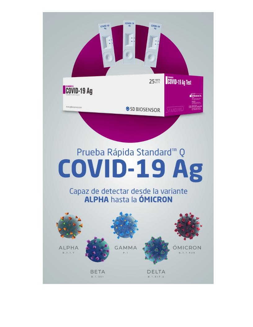 Esta prueba es un inmunoensayo cromatográfico para la detección cualitativa de antígenos específicos contra SARS- CoV-2 presente en la nasofaringe humana. Con tiempo de lectura de 15 – 30 minutos. Esta prueba debe ser aplicada sólo por profesionales de la salud, para diagnóstico in vitro.